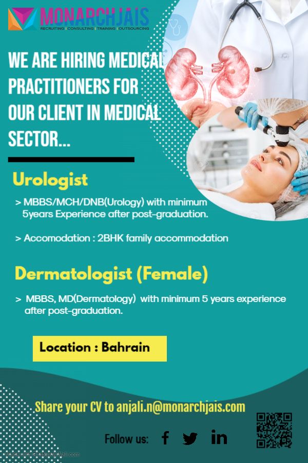 | Hiring Urologist & Female Dermatologist for Bahrain by Monarchjais |